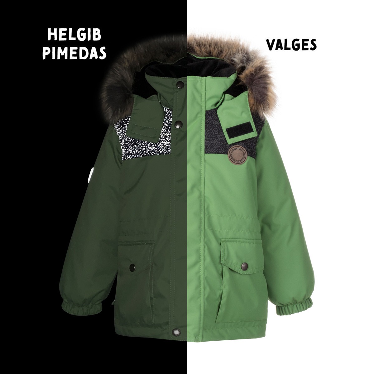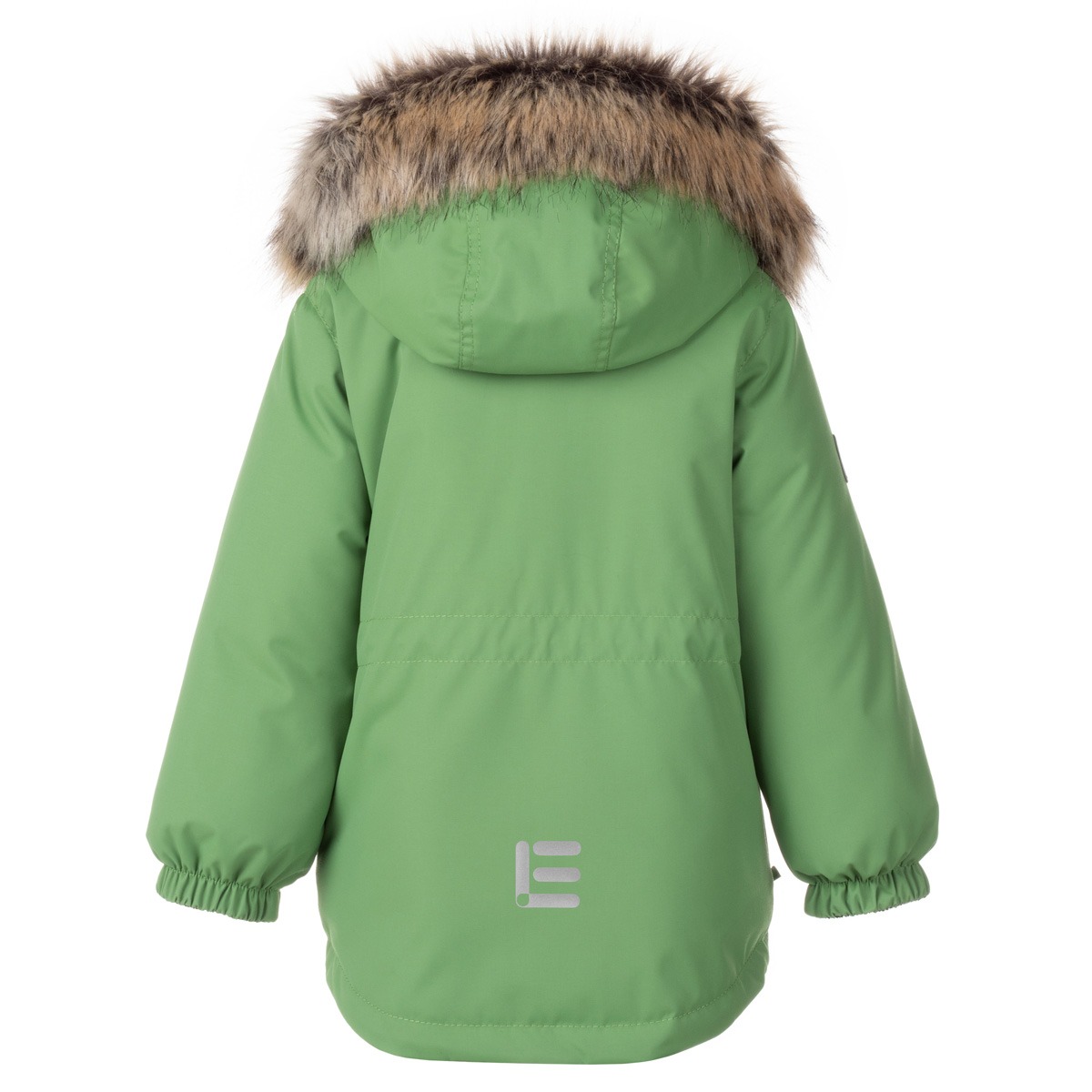 This parka, made from ActivePlus fabric with a longer back, ensures maximum comfort at all times, thanks to its high water resistance and breathability. The fabric with a waterproof surface coating protects against wind, rain, and snow, does not deform, and withstands regular washing while retaining its original properties. The hood’s faux fur trim is detachable with buttons. The parka’s design includes reflective details, making the child visible even in dark winter conditions. The snap-fastened hood is safe, as it detaches from the product if it gets caught.