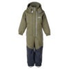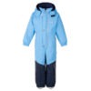 This comfortable and weatherproof overall is perfect for children who love to be active outdoors and aren’t afraid of wet weather. ActivePlus fabric protects from rain and wind, and a thinner wadded lining adds warmth in cooler temperatures. Taped seams in the lower section help keep the child’s clothes dry even during active play. The snap-fastened hood is safe because it detaches from the garment if it gets caught. Adjustable and removable foot loops keep the leg cuffs securely over their footwear. The product’s design incorporates reflective details, making the child visible even in the dark.