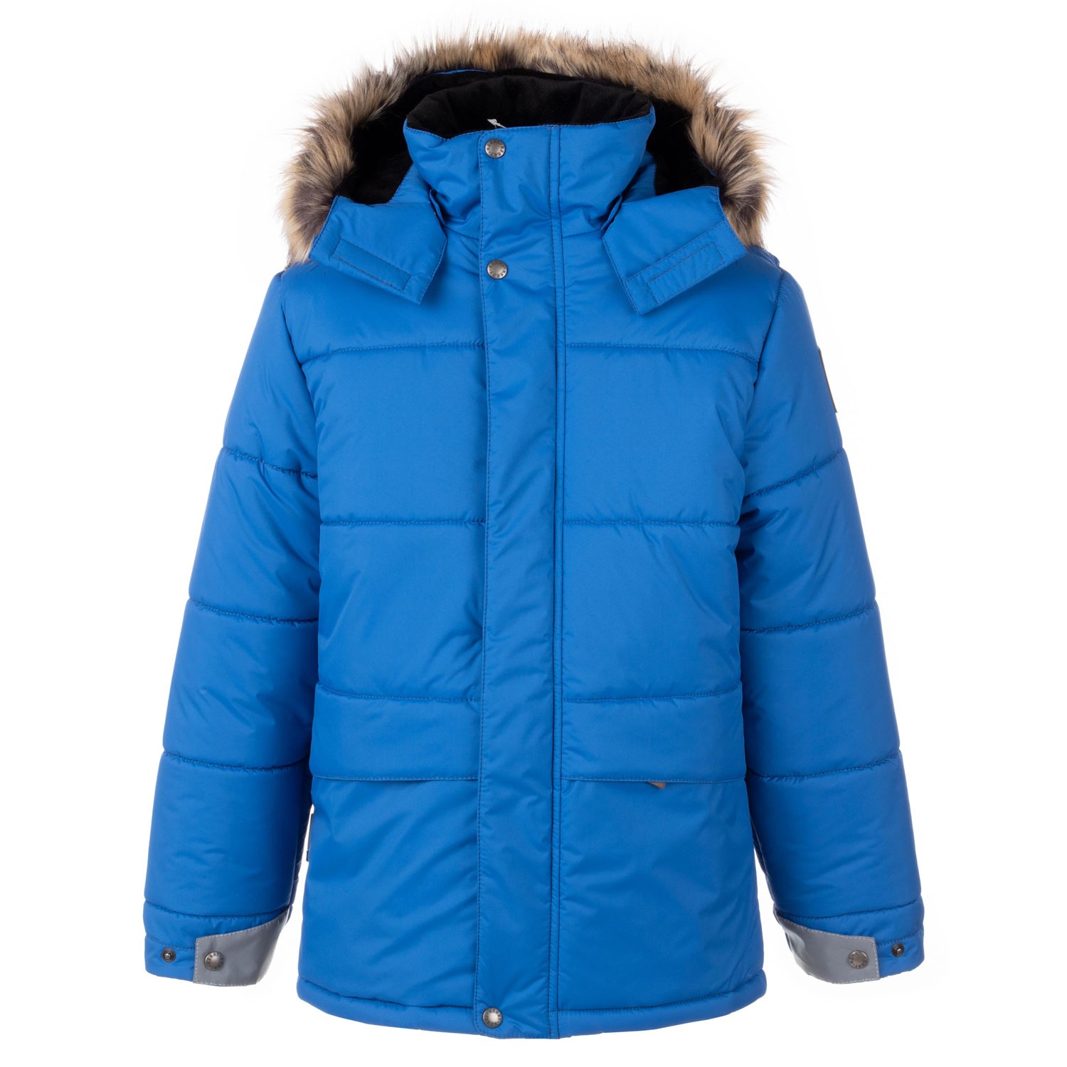 This stylish and practical boys’ winter jacket is crafted from weatherproof Active fabric. The fabric with a waterproof coating protects against wind, rain, and snow, retains its shape, and withstands regular washing while maintaining its original properties. It features two zippered front pockets and a button-removable fur trim on the hood. Ample reflective details are incorporated into the design. Adjustable snap cuffs.