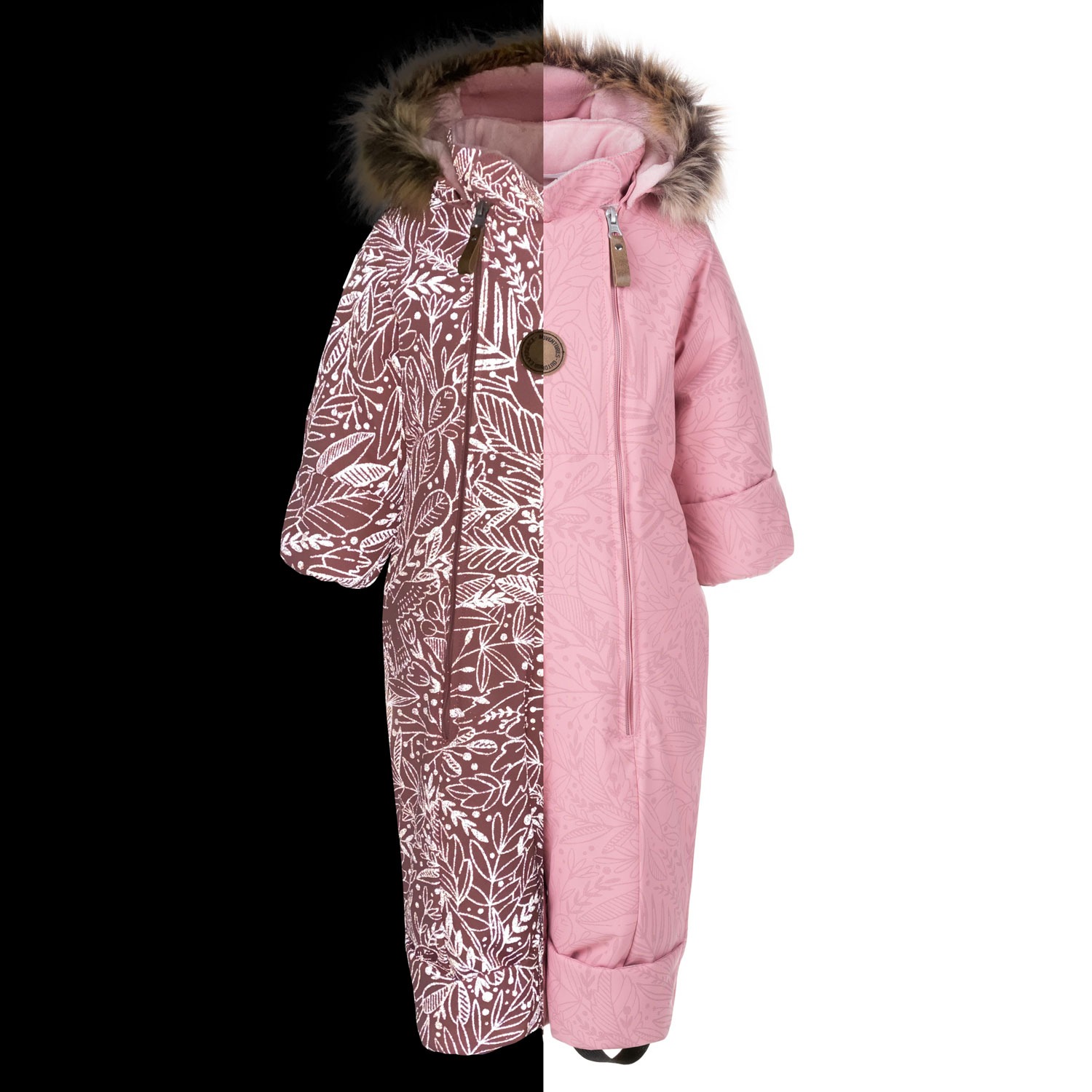 The overall’s two front zippers provide ample room for dressing a child, even when they are sleeping in a stroller or car seat. Fold-over leg and sleeve cuffs allow the overall to adapt to your child’s growth, letting them be worn closed or open with winter boots and gloves. Soft elastic stirrups keep the leg cuffs securely over footwear. Reflective details incorporated into the design also ensure the child is visible during darker hours.