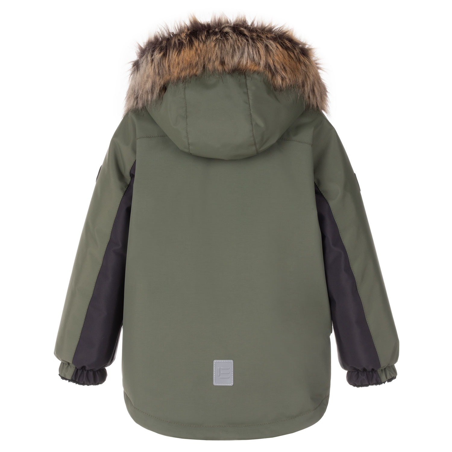 The parka/jacket with a longer back, made from ActivePlus fabric, ensures maximum comfort at all times, thanks to its high water resistance and breathability. The fabric with a waterproof coating protects against wind, rain, and snow, retains its shape, and withstands regular washing while maintaining its original properties. The hood fur is removable with buttons. The parka design incorporates reflective details, making the child visible even during dark winters. The snap-fastened hood is safe because it detaches from the garment if it gets caught.