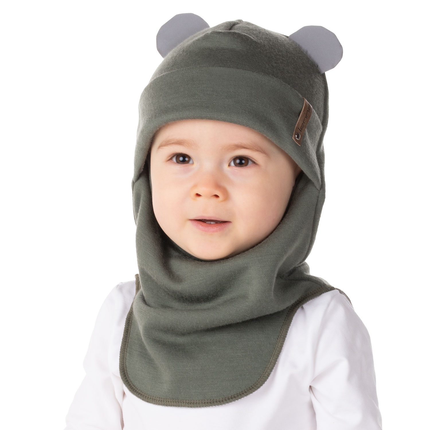 Cute merino wool balaclava with reflective ears ⭐ with warm cotton fleece lining!