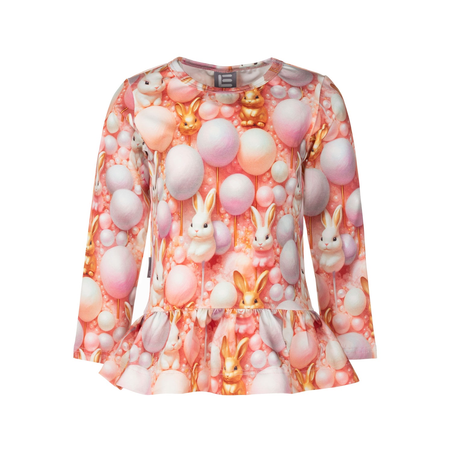 This beautiful solid-colored ruffled shirt for girls features a round neckline and long sleeves, making it easy to style. Made from high-quality, skin-friendly fabric, the blouse retains its shape and color even after repeated washes. Be sure to also check out our matching dresses, t-shirts, hats, and neck gaiters.