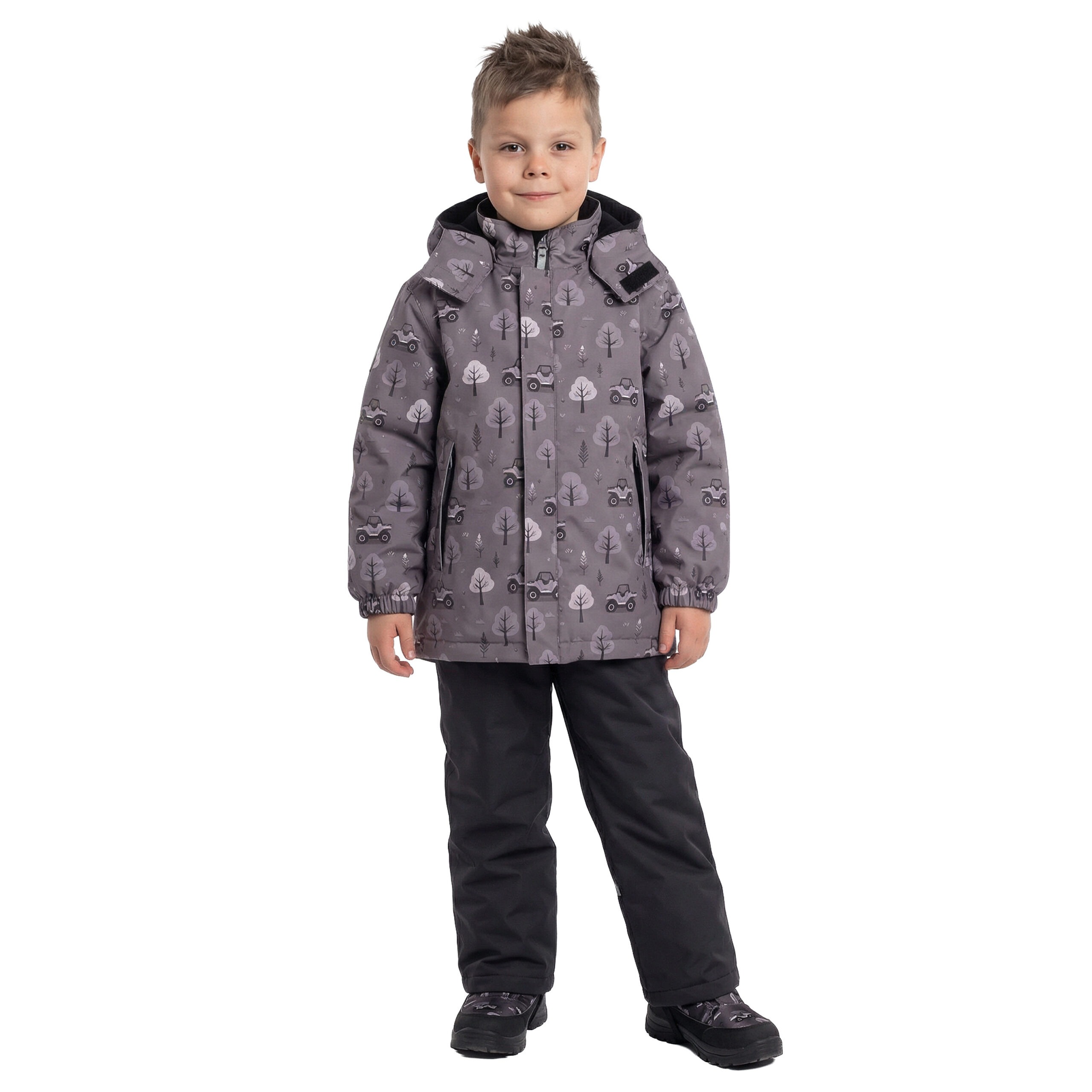 This spring-autumn set is designed for active movement and everyday wear in kindergarten, on the way to school, and during outdoor play, perfect for changeable and unpredictable weather. The wind and waterproof jacket with dungaree trousers helps keep your child dry even when playing on muddy paths and wet grass. The suspenders keep the trousers securely in place, allowing freedom to run, climb, and squat without the clothing shifting. Zippered pockets keep hands warm and small essentials safe. The hood is attached to easily detach if caught, supporting your child’s safe and carefree movement.