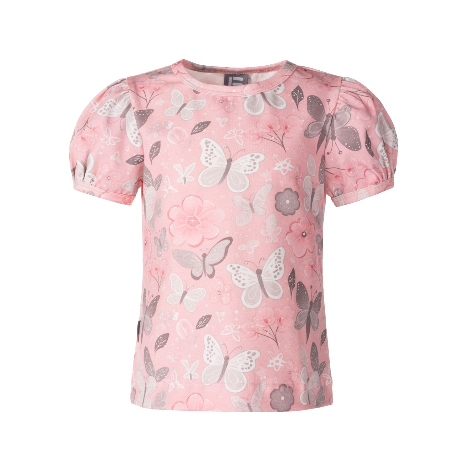 Cute T-shirt for a girl with charming shoulder ruffles!