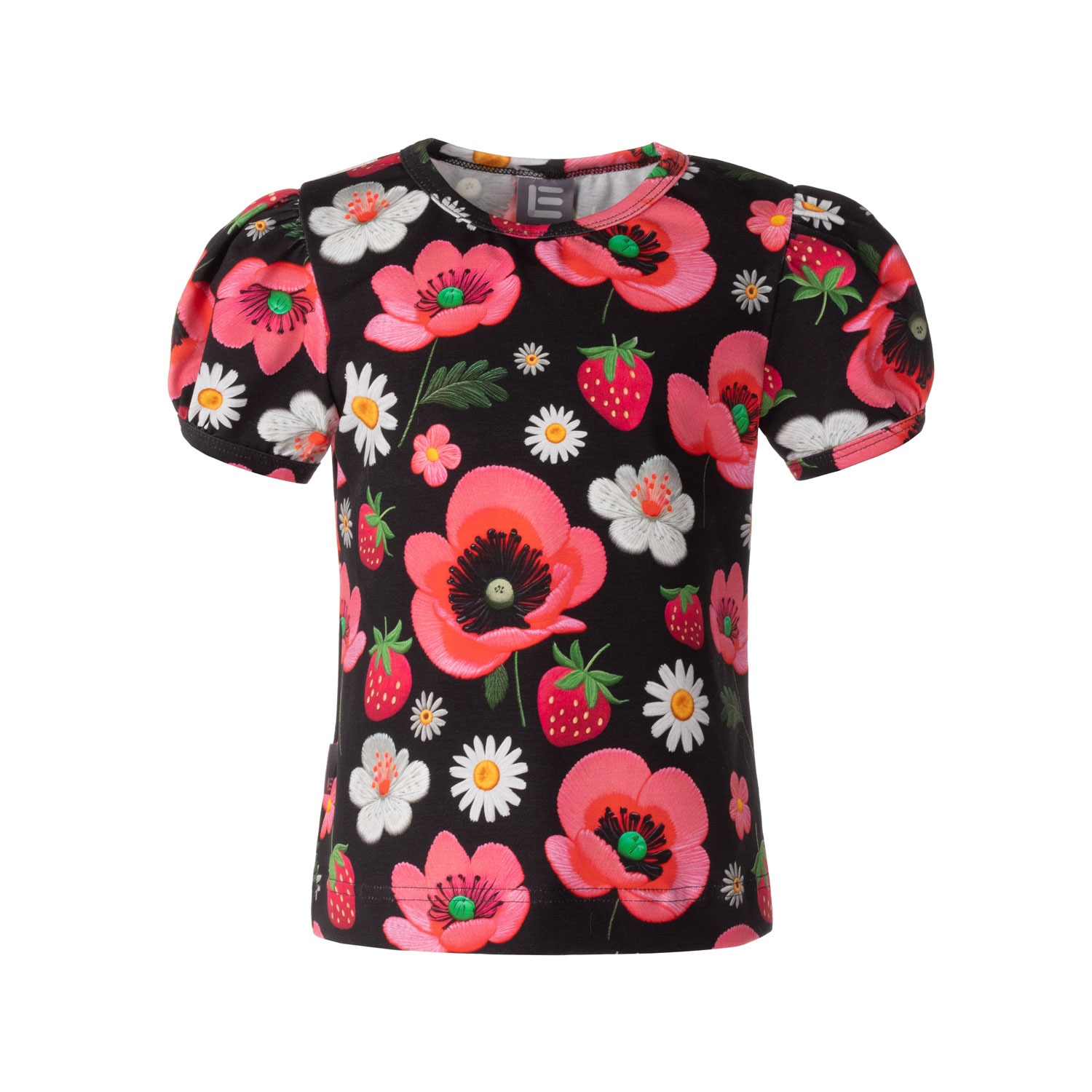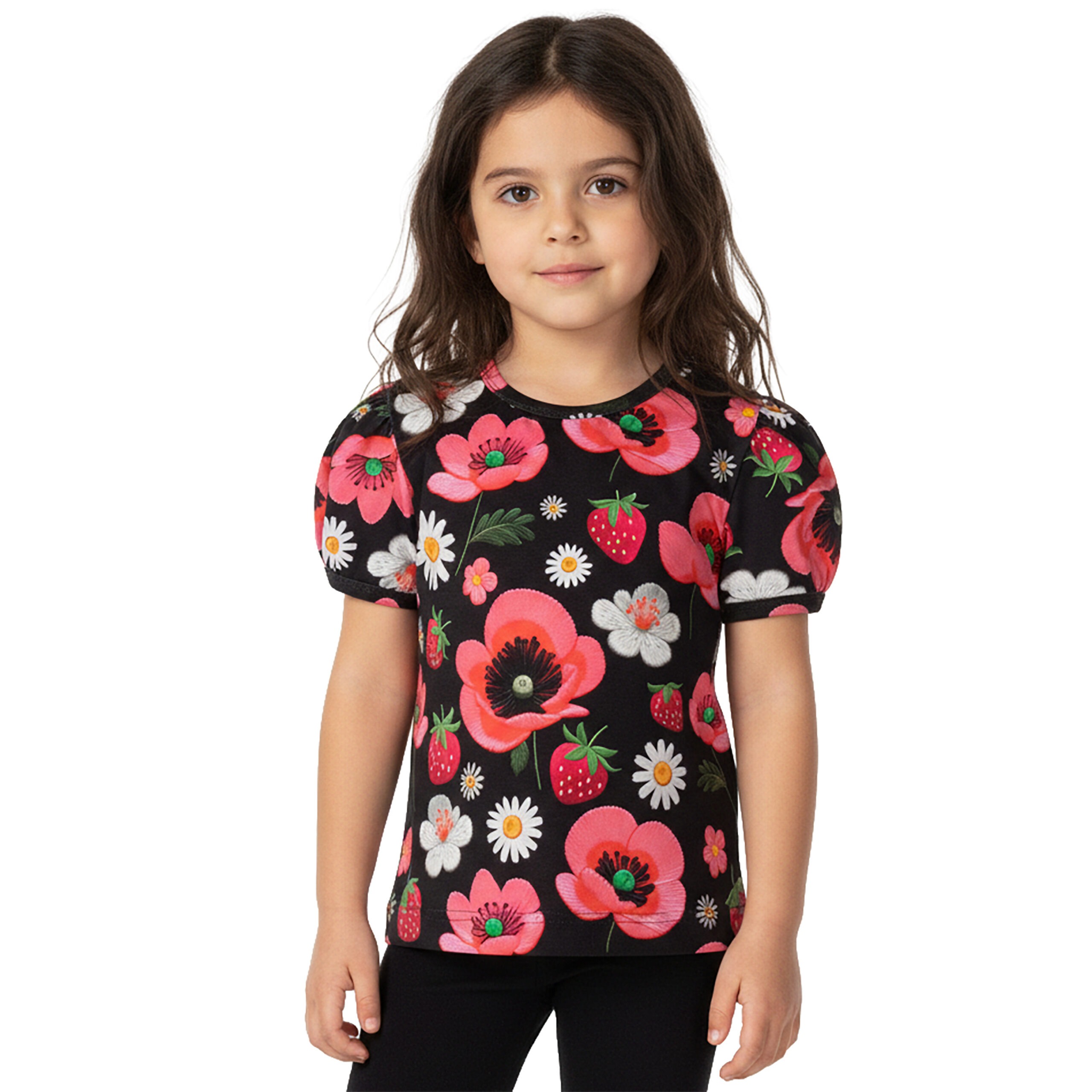 Cute T-shirt for a girl with charming shoulder ruffles!