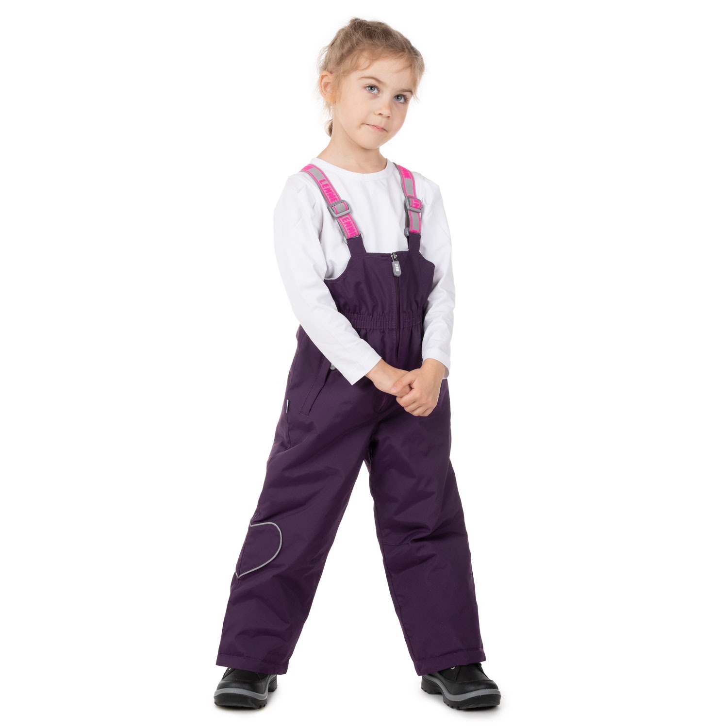 Traksipüksid on eriti vastupidavast vee-ja tuulekindlast kangast, mis tagab mõnusa äraolemise iga ilmaga. Veekindla pinnakattega kangas kaitseb tuule, vihma ja lume eest, ei deformeeru ning kannatab regulaarset pesemist säilitades oma algsed omadused. Tüdrukute traksipükse kaunistavad helkurist südame detail ja ilusad roosad traksikummid ning jalakummid.