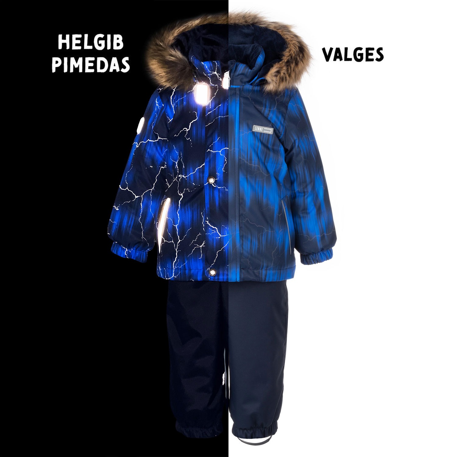 Toreda mustriga jopel on kõige soojem talvevooder. Reguleeritavate traksidega püksid lubavad komplekti kohandada lapse kasvuga. Pükste kõrgem pihaosa hoiab lapse selja soojas isegi suures mänguhoos. Disainis on kasutatud helkurdetaile, mis muudavad lapse nähtavaks ka pimedal talvel. Trukkidega kinnitatud kapuuts on turvaline, sest takerdumisel tuleb toote küljest lahti. Talvekomplektil on reguleeritavad ja eemaldatavad jalakummid hoiavad sääreosa kindlalt jalanõu peal.
