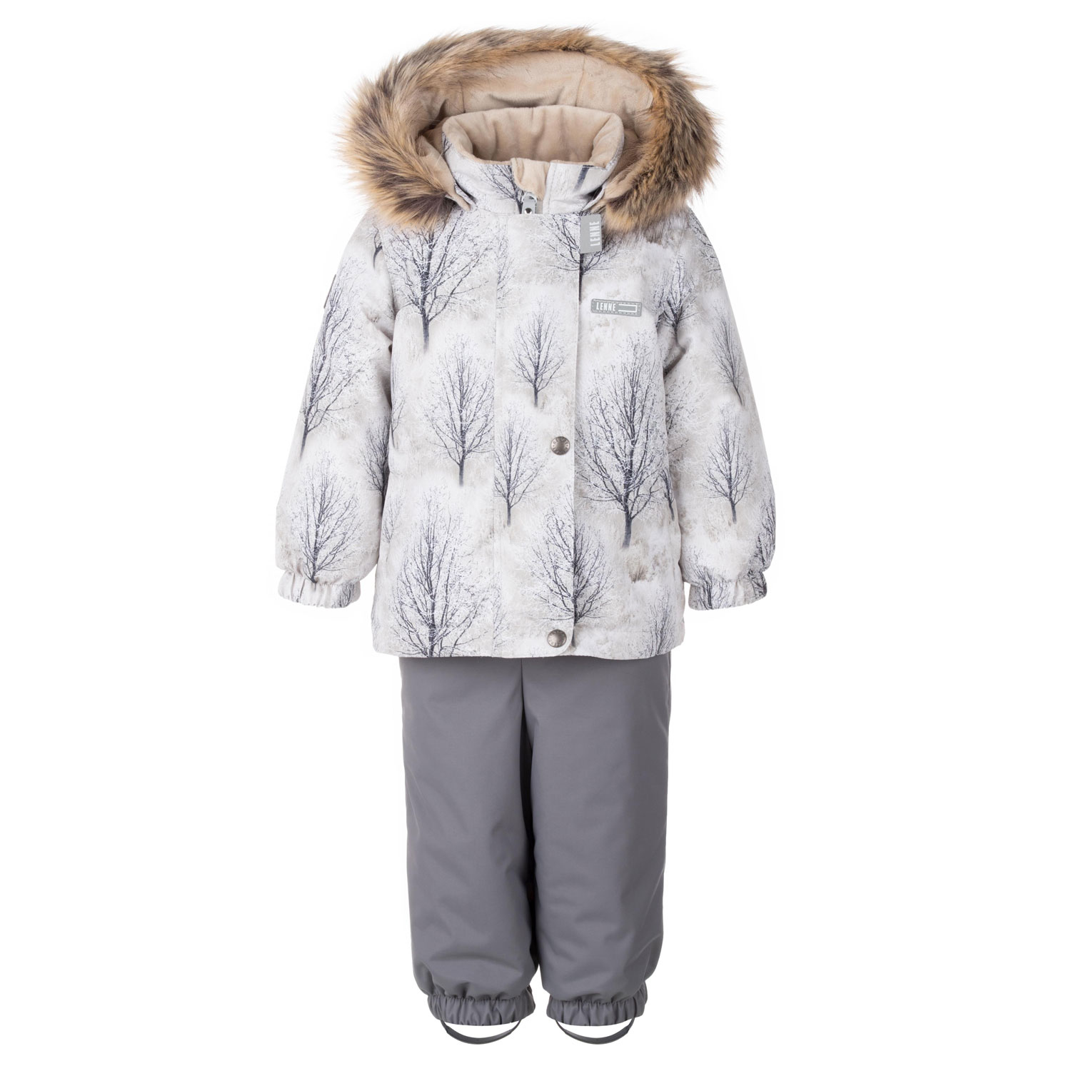 Efektse mustriga soe jope koos klassikaliste ühevärviliste talvepükstega on ilus ja praktiline talvine õuekomplekt. Jopel on kaks küljetaskut, kuhu on hea pista taskurätipakk või kõik teelt leitud erilised kivikesed. Reguleeritavate traksidega püksid lubavad komplekti kohandada lapse kasvuga. Pükste kõrgem pihaosa hoiab lapse selja soojas isegi suures mänguhoos. Disainis on kasutatud helkurdetaile, mis muudavad lapse nähtavaks ka pimedal talvel. Trukkidega kinnitatud kapuuts on turvaline, sest takerdumisel tuleb toote küljest lahti. Reguleeritavad ja eemaldatavad jalakummid hoiavad sääreosa kindlalt jalanõu peal.