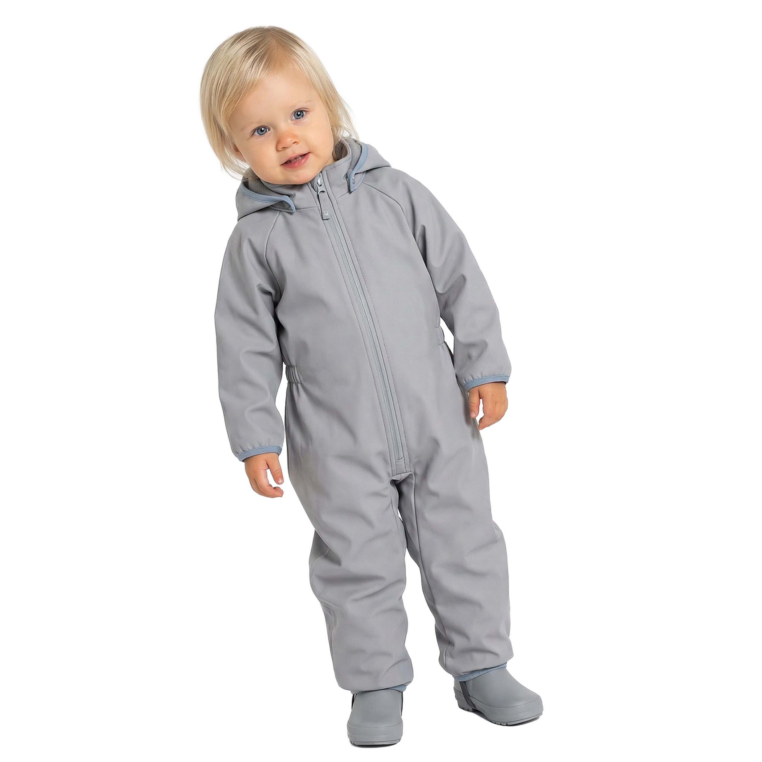 Uudse lahendusega kombinesoon sobib kevadiseks õuesolekuks ja olukordadesse, kus liikumine vaheldub soojemate sisetingimustega. Sisseõmmeldud traksid võimaldavad ülaosa mugavalt alla võtta ja hoida rõivas seljal, ilma et peaks kombinesooni seljast võtma. Pehme pealispind kaitseb tuule, jaheduse ja vihma eest ning toetab lapse vaba liikumist. Trukkidega kinnitatud kapuuts avaneb takerdumisel ning helkurdetailid aitavad last hämaras paremini märgata.
