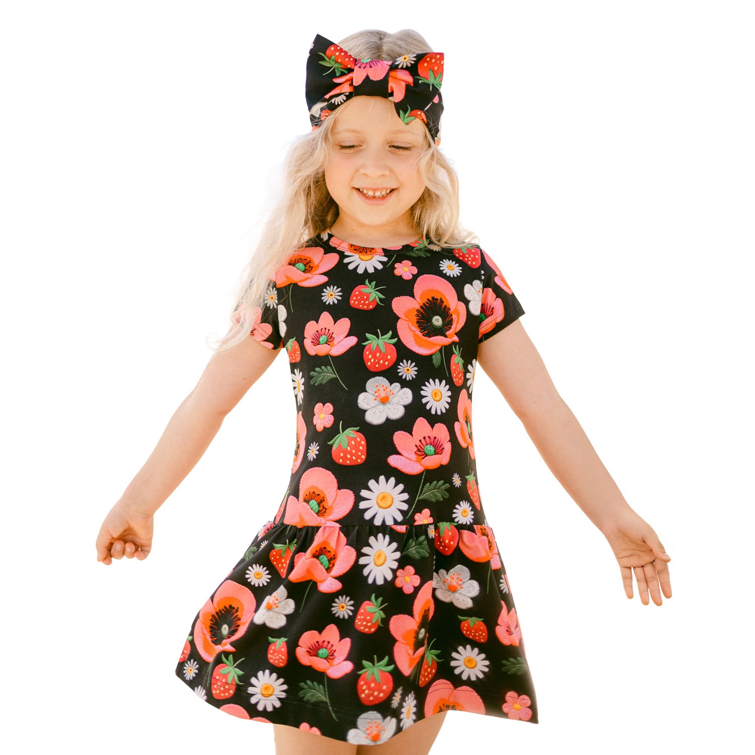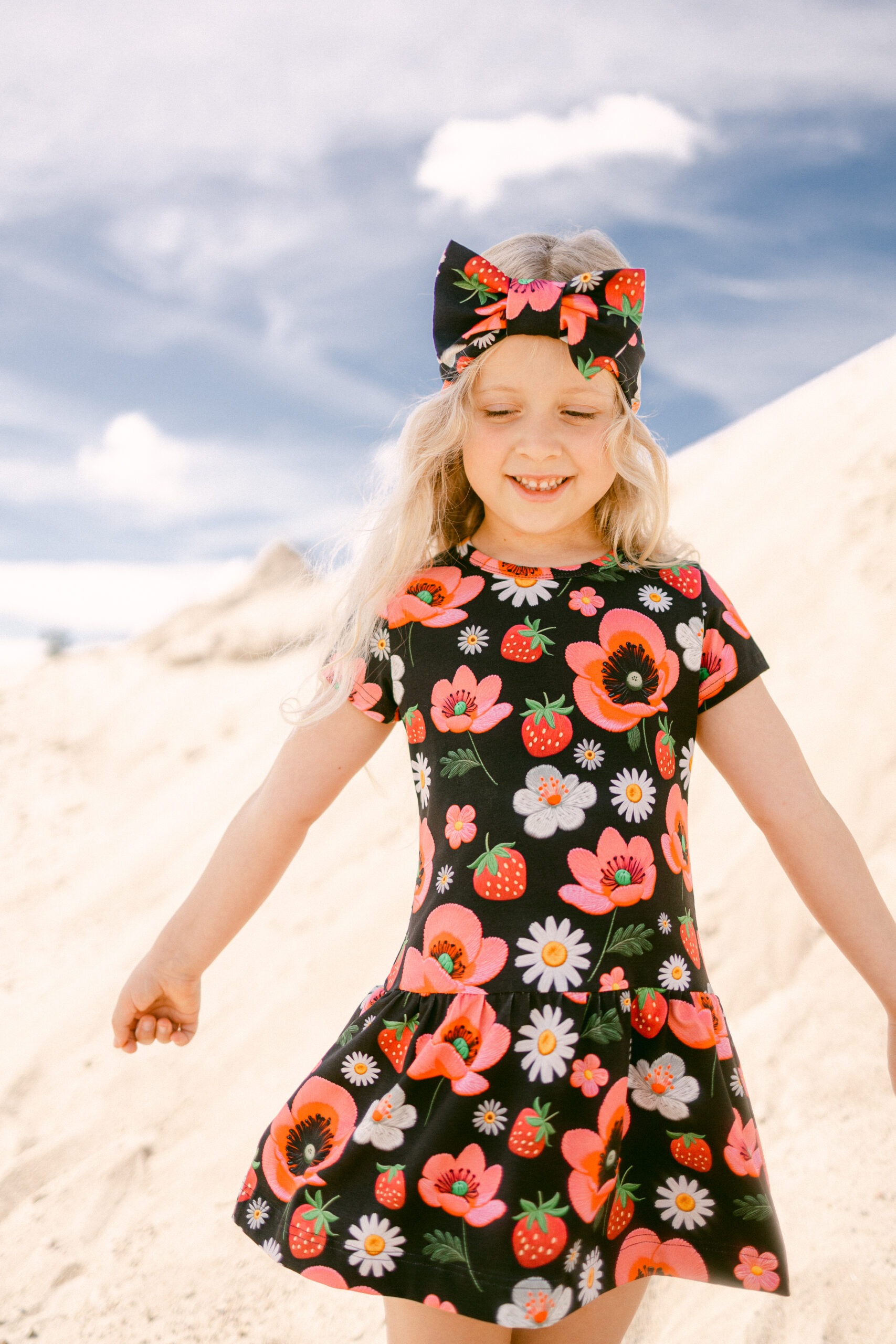 Armsa trükimustriga puuvillane kleit sobib ideaalselt igapäevaseks kandmiseks. Kleidi all olev sats annab tootele vabadust ja mugavust. Vaata kindlasti juurde ka sobivaid retuuse, t-särke, mütse ja torusalle.