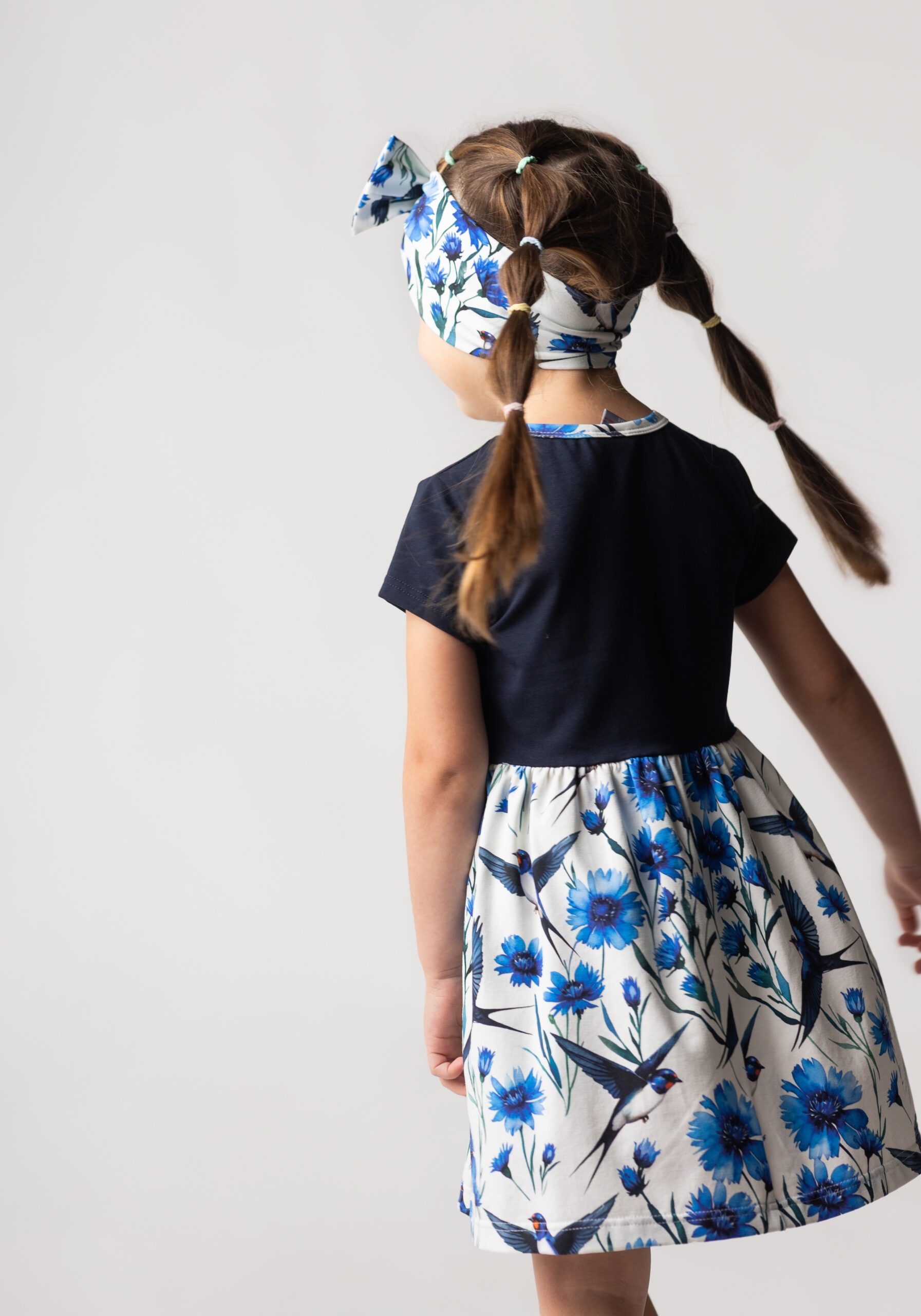 Mugav kleit, mis sobib nii igapäevaseks kandmiseks kui ka pidulikumateks hetkedeks. Pehmest ja nahasõbralikust Öko-Tex 100 sertifikaadiga puuvillasegu kangast valmistatud kleit on meeldiv kanda aastaringselt. Ühevärvilist ülaosa täiendavad mustriline alumine osa ja kaelakaare kant.